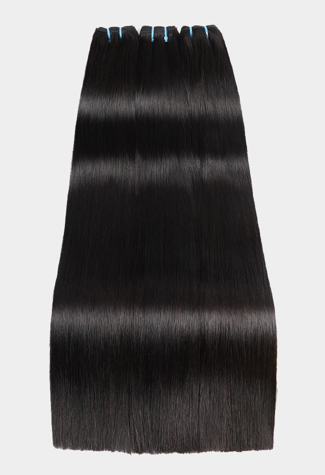 hair super long and almost jet black . blended well . minimal shedding . came body wave and straightened. no weird smell . super cute !