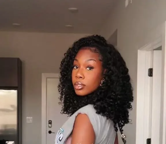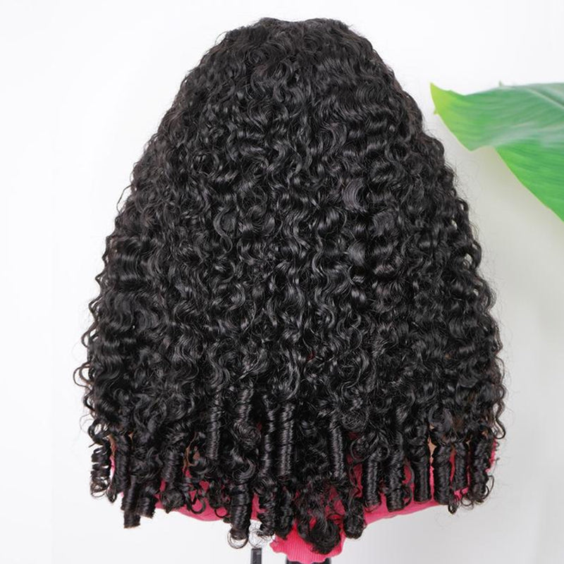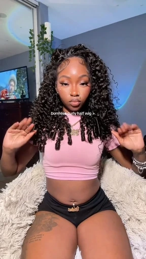 Burmese Curly Half Wig InvisiFit Strap Human Hair Wigs with Spiral Ends Wear Go Glueless Wig for Beginners