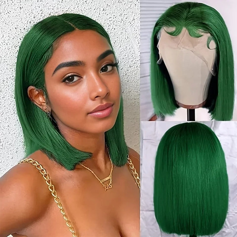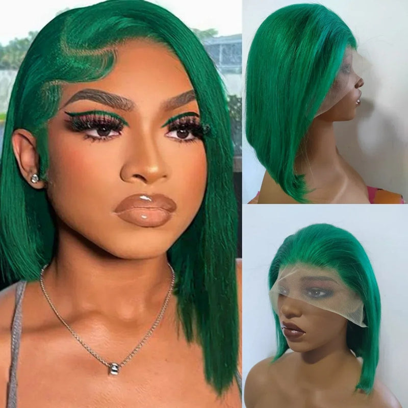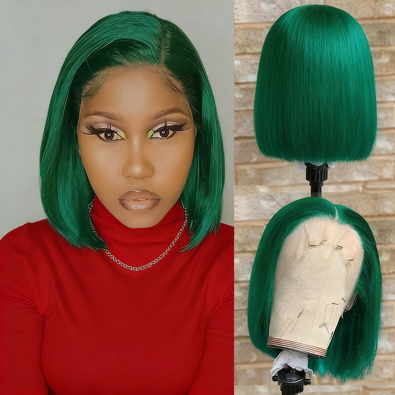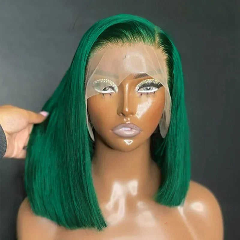 Dark Green 13x4 Lace Frontal Short Bob Wig Human Hair Wigs 100% Human Hair Quality 150% Density