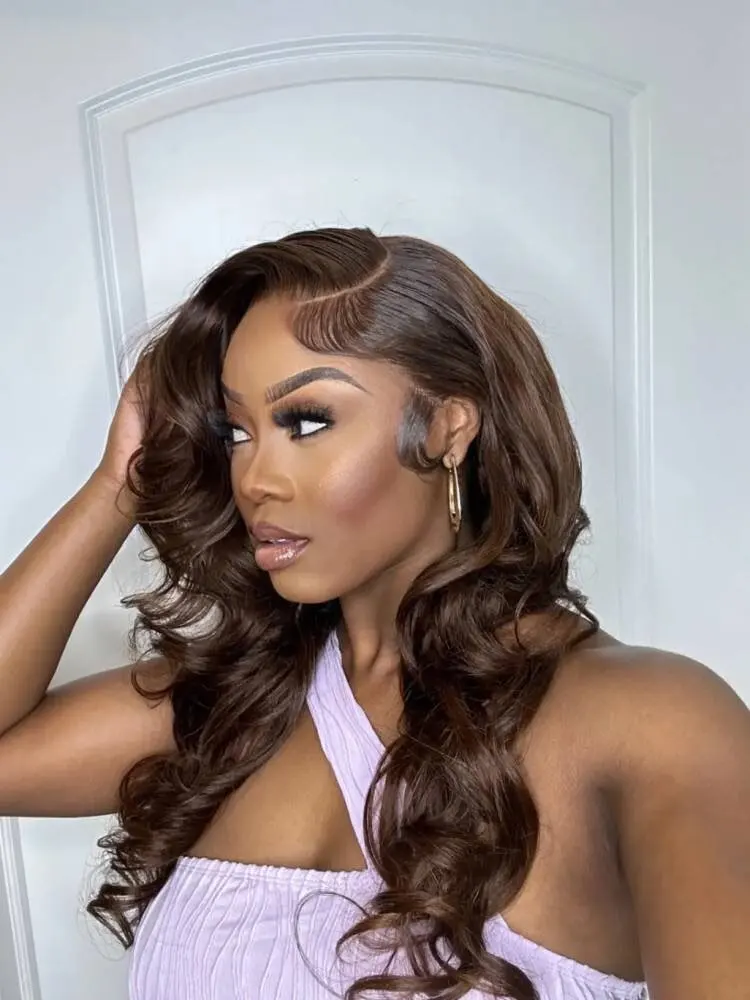 #4 Brown Body Wave 13x6 HD Lace Front Wig Chocolate Brown Lace Frontal Human Hair Wigs for Women