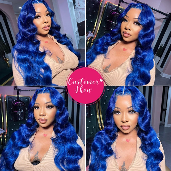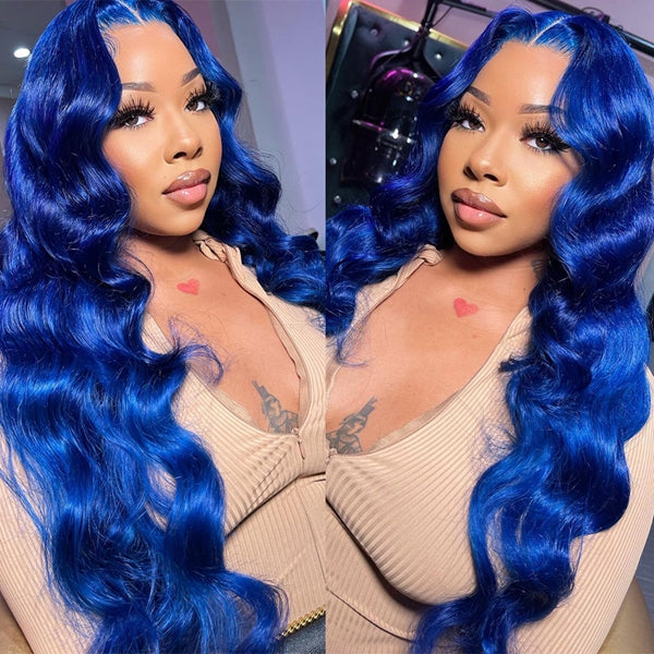 Blue Body Wave 13x4 HD Lace Front Wigs Colored Human Hair Wigs for Women