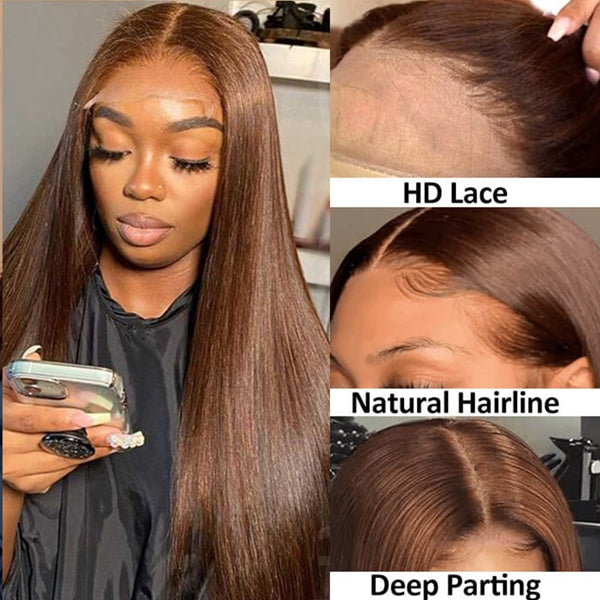 Looking for Brown Wig? Brown Lace Front Wig Has a Nice Texture and with High Quality Material, It is a Kind Of Colored Wigs Which you can do any style According to Your Choice. Brazilian Human Hair HD Transparent Lace Front Wigs. High Quality Human Hair, Healthy and Soft, Clean and Shiny, Smooth and Silky, Natural Looking as Your Real Hair. It Is Definitely Your Daily Good Looking New Replacement Wig. Auburn Brown Wig Can Match with Any Color Hairstyle You Like. Meanwhile, #4 Brown Wig Looks Like Real. Dark Brown Light Brown Human Hair Wigs are Very Popular.