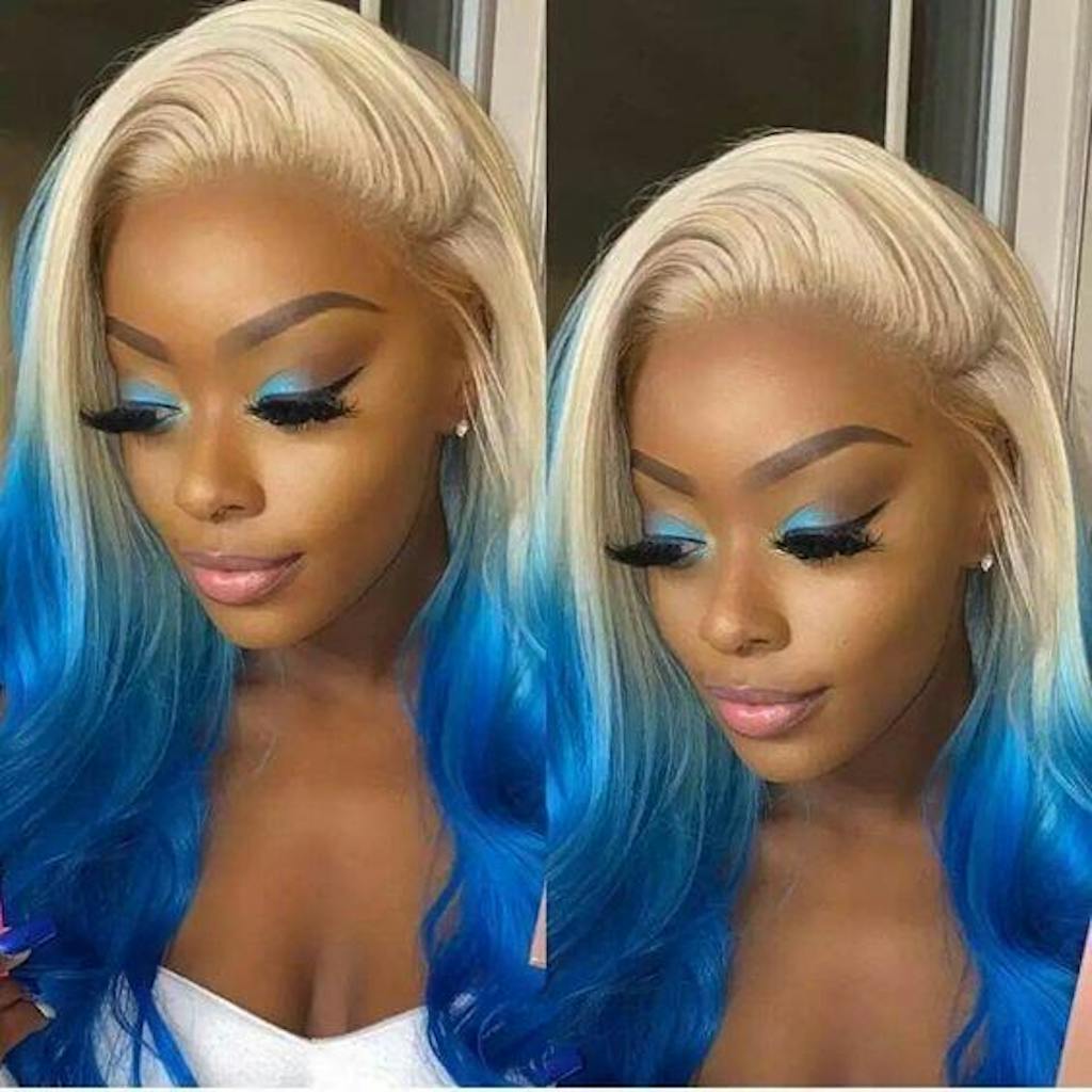 Lolly Blonde Lace Front Wig with Blue Ends Ombre Highlight Blue Colored Wigs Body Wave 13x4 HD Lace Front Wig Human Hair
