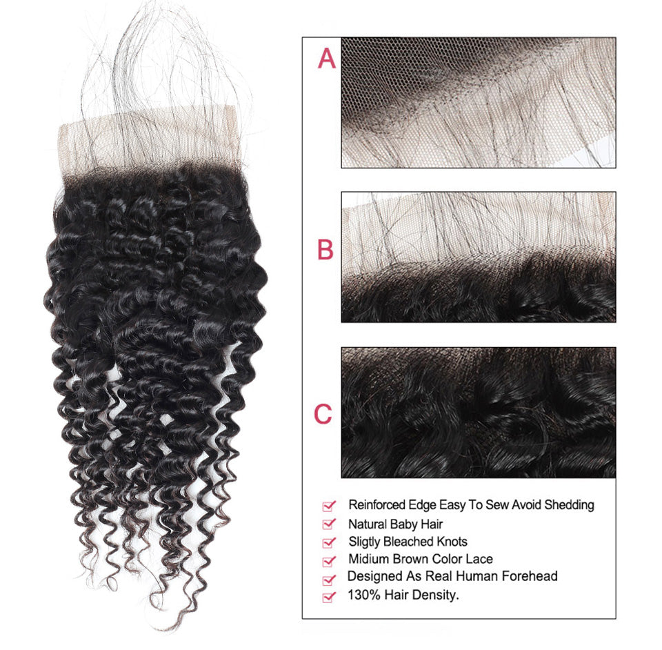 Brazilian Curly Human Hair Bundles with Closure 4x4 5x5 Transparent Lace Closure and Bundles