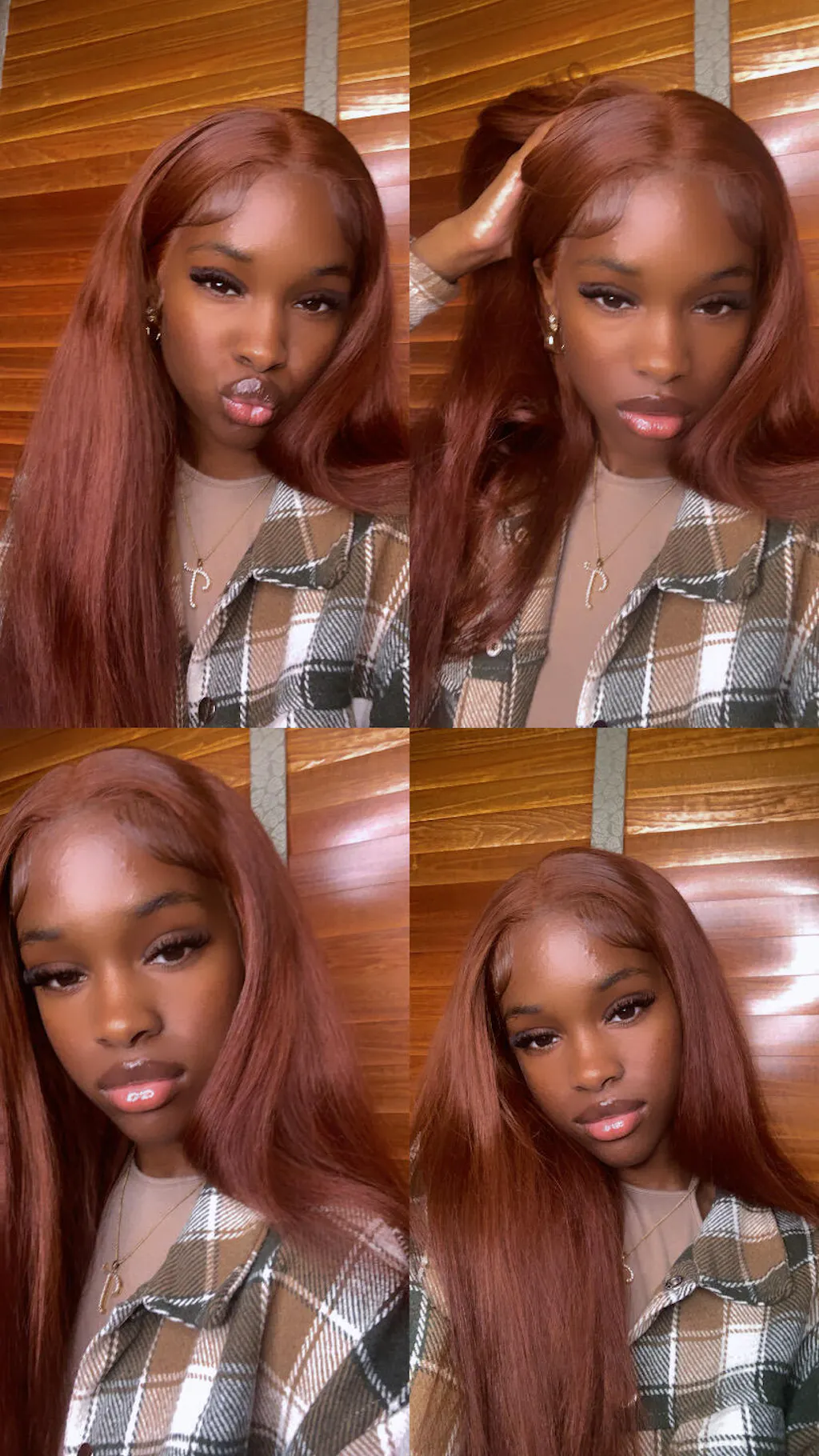 Lolly #33 Reddish Brown Glueless HD Lace Front Wigs Straight Pre Plucked Wear Go Colored Human Hair Wigs