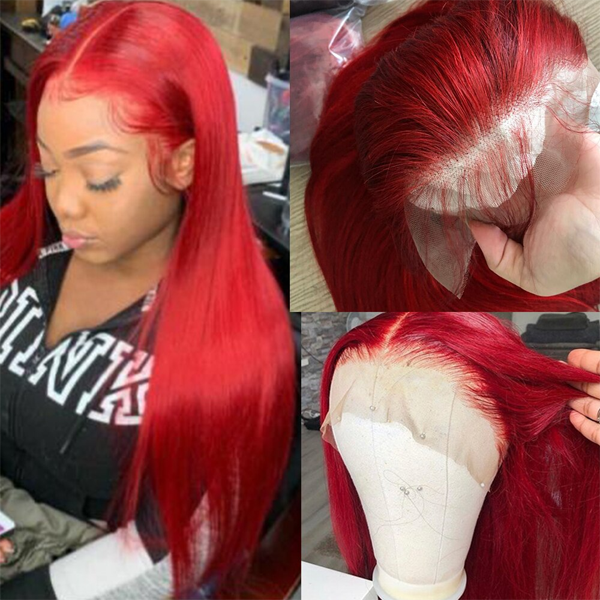 Red Lace Front Wigs Human Hair Material is 12A Brazilian Virgin Human Hair. 30 inch wig Pre Plucked with Baby Hair.100% Remy Hair Collected. Soft and Bouncy,Natural and Healthy. No Smell,No Shedding, No tangle. The hair takes to color beautifully and holds a curl well, Styled As You Like. Great wig for a beginner or something quick. 4x4 13x4 HD Lace Front Wigs with elastic Bands . Colored Wigs allows to Change the Tightness to Fit Your Head Circumference.Deep Wave Wig Free Part, Middle Part or Side Part as You Wish.