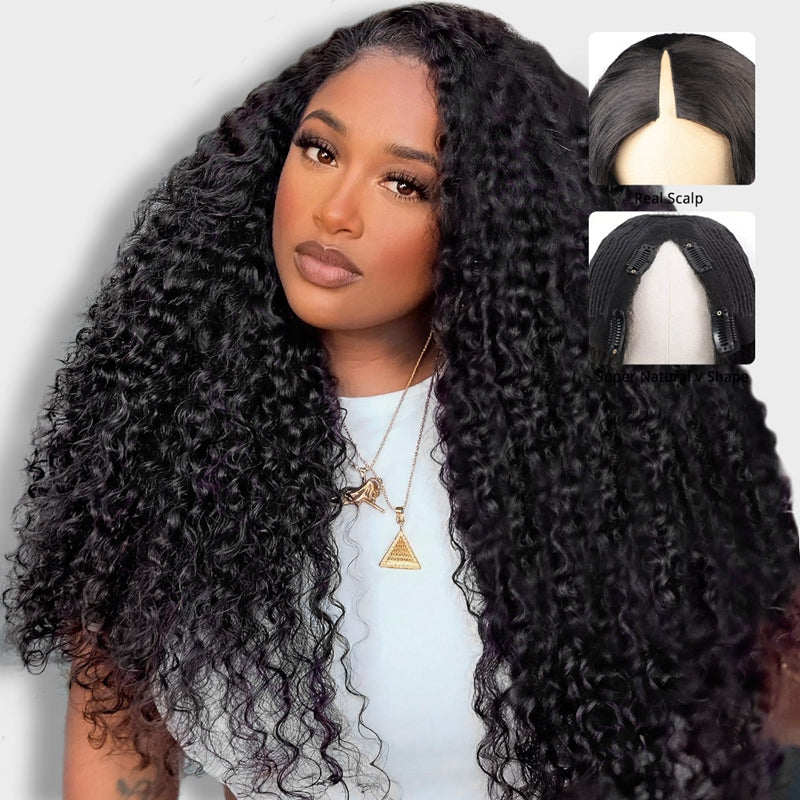 V Part Curly Wig Beginner Friendly Glueless Curly Human Hair Wig