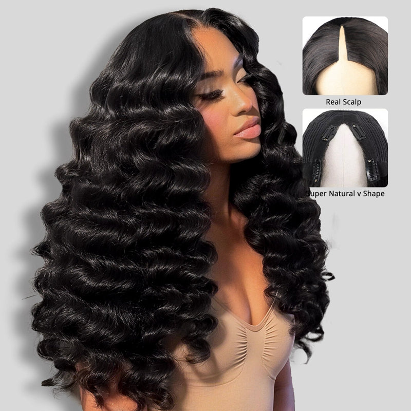 Glueless V Part Wig Loose Deep Wave Human Hair Wigs Can Part Anyway Upgrade U part Wig Without Leave out
