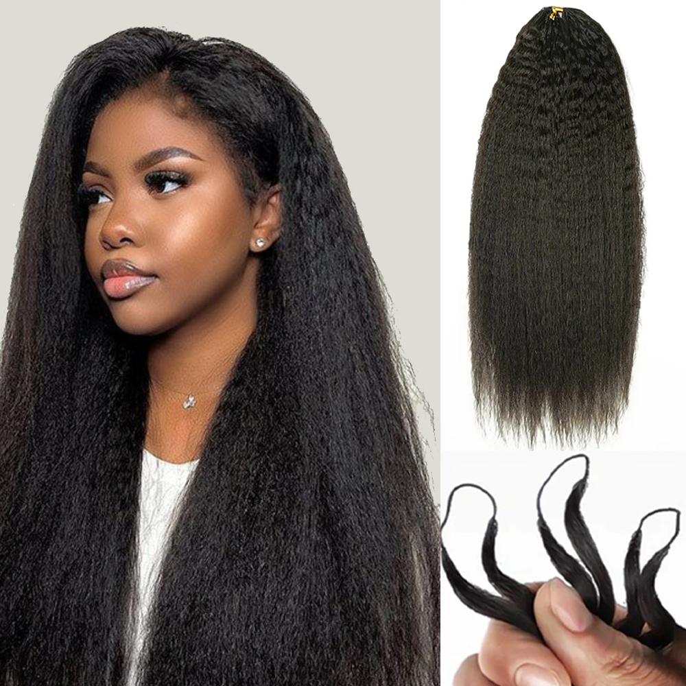 Afro Kinky Straight Knotless Pre-Separated Crochet Human Hair Extensions Feather Crochet Hair 100% Remy Human Hair Extension