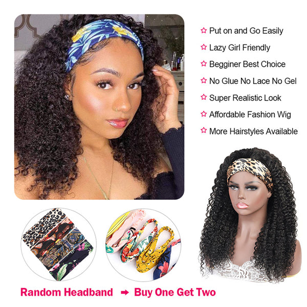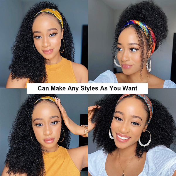 Hair Type: Kinky Curly, Human Hair Wigs, Headband Wig, head band wigs