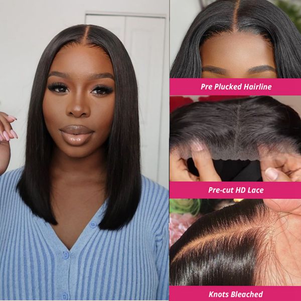 Texture Straight PPB Wear Go Wigs,Glueless Human Hair Wig,Bob Wigs