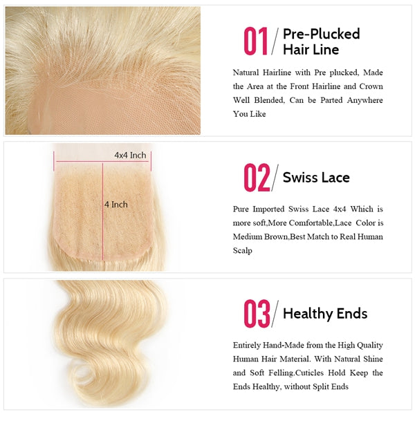 613 Body Wave Lace Closure Pre Plucked 4x4 Lace Closure with Baby Hair