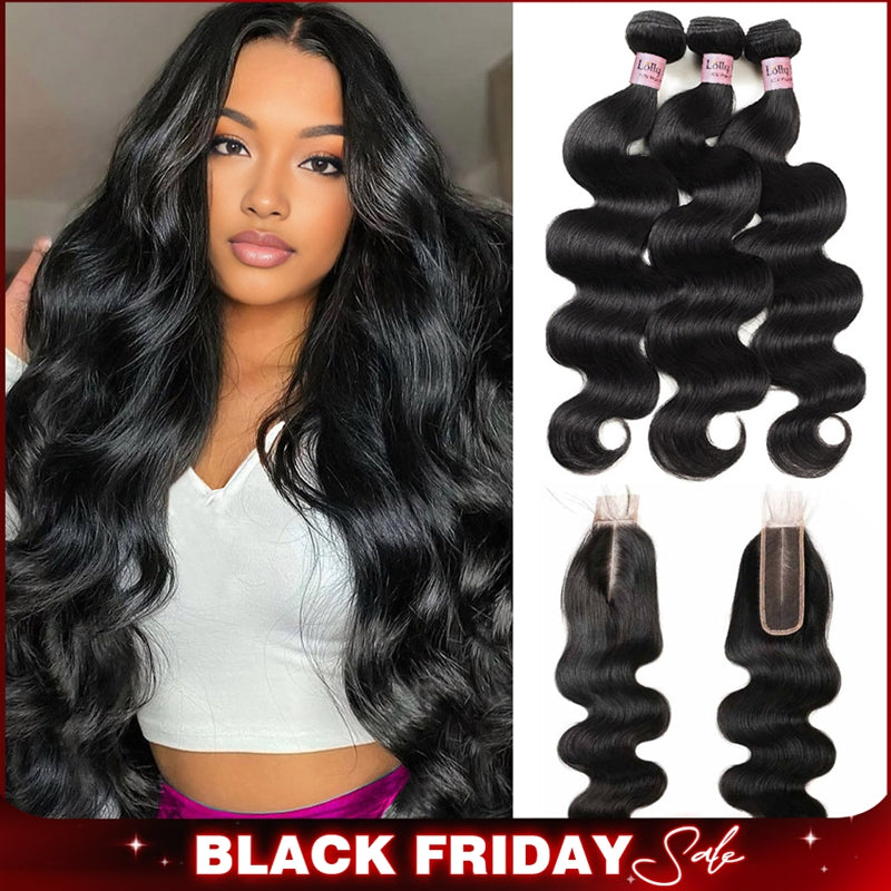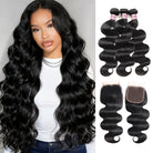 [Ship from US Warehouse] Body Wave 3 Bundles with Closure Brazilian Affordable Remy Human Hair Weave Bundles with 4x4 HD Lace Closure