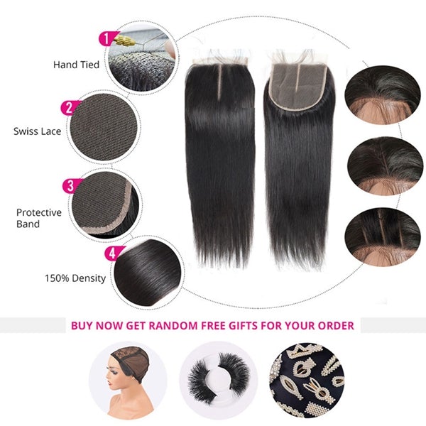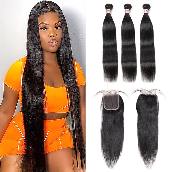 8A Unprocessed Peruvian Hair 3pcs Straight With 4*4 HD Lace Closure