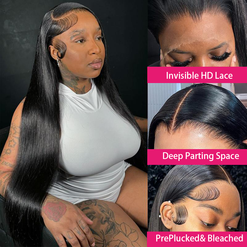 HD Lace Frontal Wig 13x6 Undetectable Invisible HD Lace Front Wig Pre Plucked 30Inch 200% Density Bone Straight Human Hair Wigs