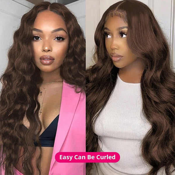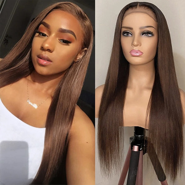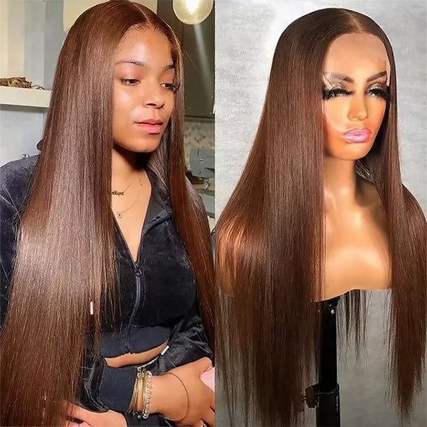 Lolly 4# Chocolate Brown 5x5 Wear & Go Wig Glueless 13x4 HD Transparent Straight Colored Human Hair Wig For Women