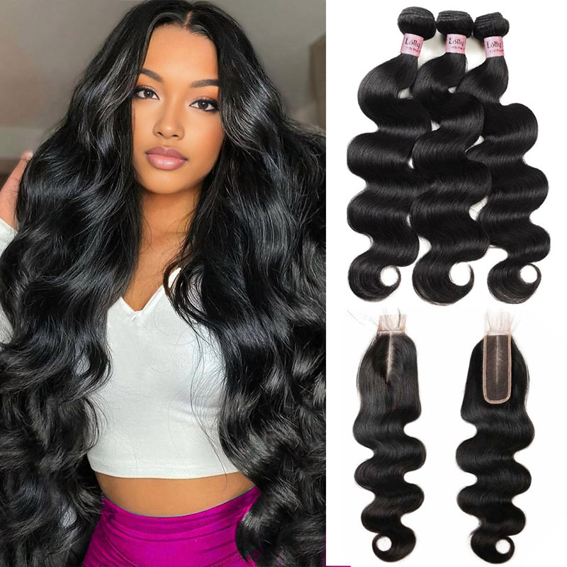 Texture: Body Wave /Straight Hair Bundles with Closure, 2x6 Lace Closure with Bundles