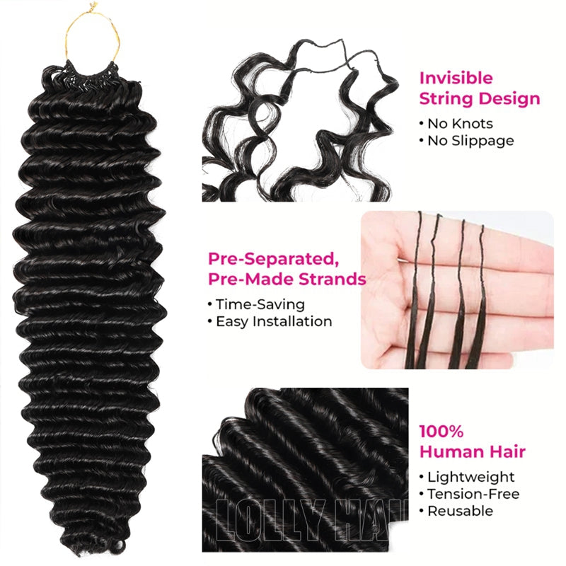 Deep Wave Knotless Pre-Separated Crochet Hair Extensions 50g Invisible Knotless Feather Crochet Human Hair Bundles Twist Braiding Hair