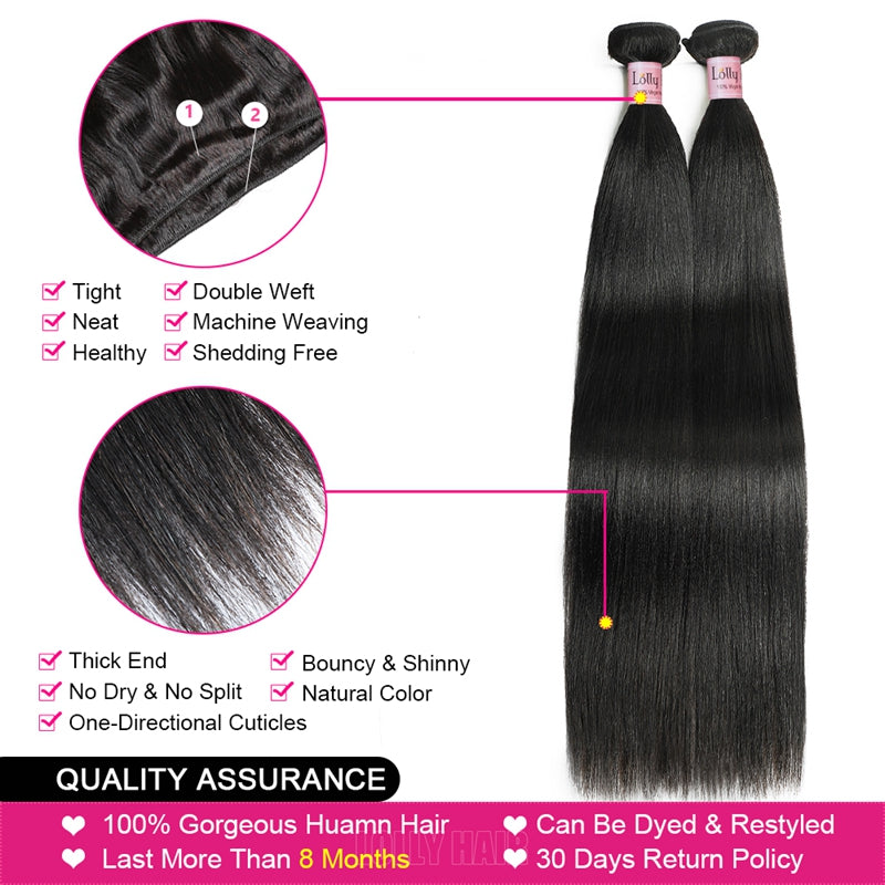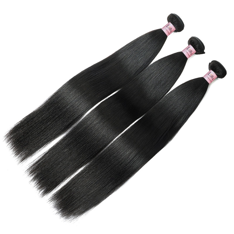 [Ship from US ] Light Yaki Straight Human Hair Bundles 100% Human Hair Sew-In Weaves 10-30 Inch 1/3/4 Packs Quick Weave Straight Hair Extensions